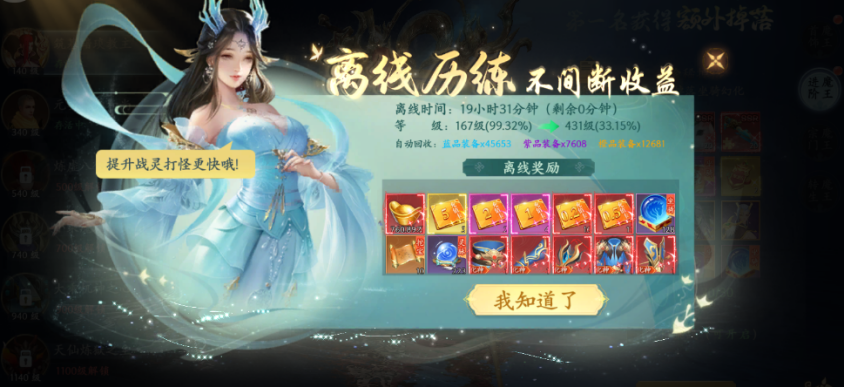 6、離線歷練:離線期間會不斷存儲經驗和道具待玩家上線領取,需要使用歷練符咒來增加掛機時間。
