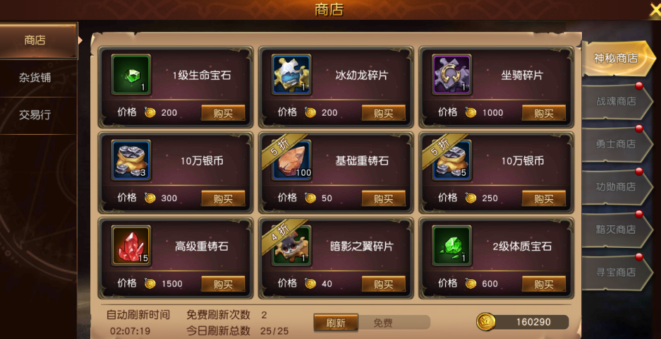 銀幣:銀幣作為游戲內(nèi)功能消耗性道具,銀幣的獲取途徑也幾乎涵蓋了游戲內(nèi)的各大玩法。主線關(guān)卡、世界塔、哥布林副本、競技場、團(tuán)隊(duì)副本、遺跡副本,都能獲得銀幣。在雜貨鋪除此之外,在每日的在線活動(dòng),簽到以及活躍度獎(jiǎng)勵(lì)中也能獲取少量銀幣。
